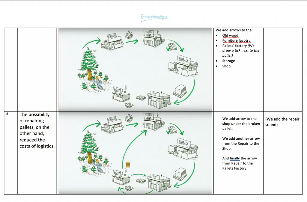 A storyboard is the “outline” of the video. It makes it possible to see how each scene in the video will look like, in advance.